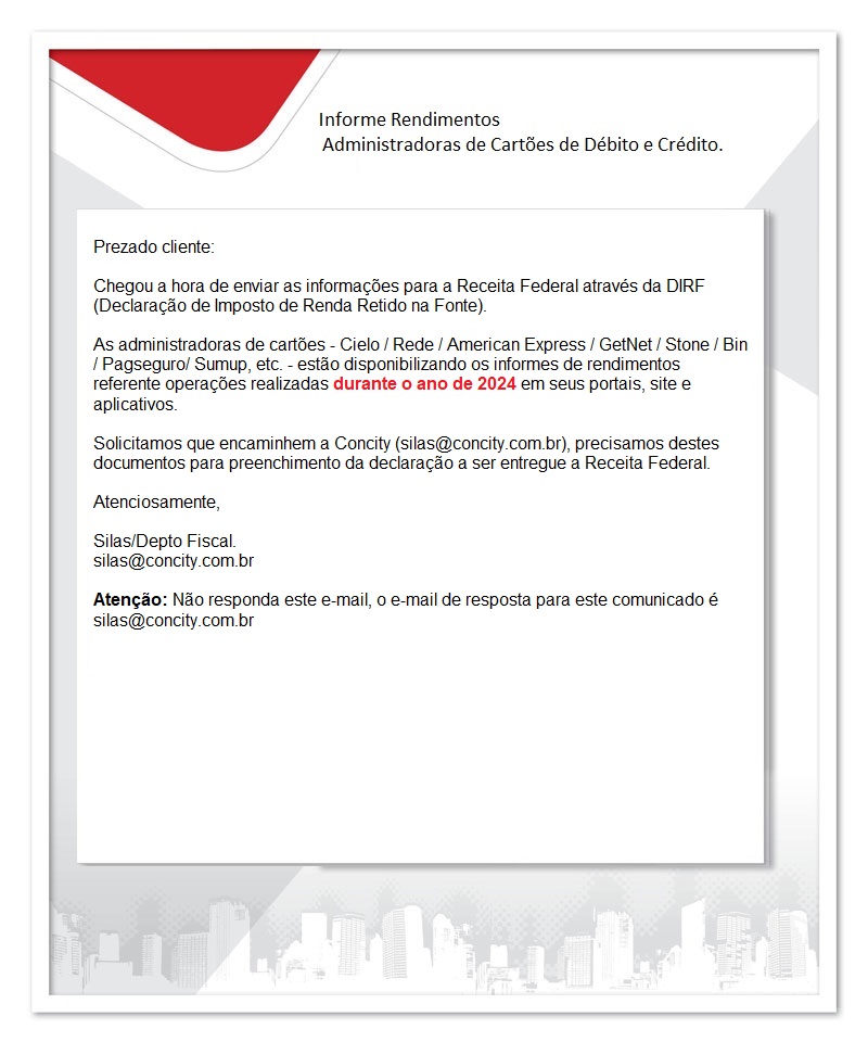 Informe Rendimentos - Administradoras de Cartões de Débito e Crédito