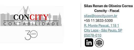Em caso de dúvidas, solicitamos entrar em contato com a equipe fiscal da Concity Contabilidade.